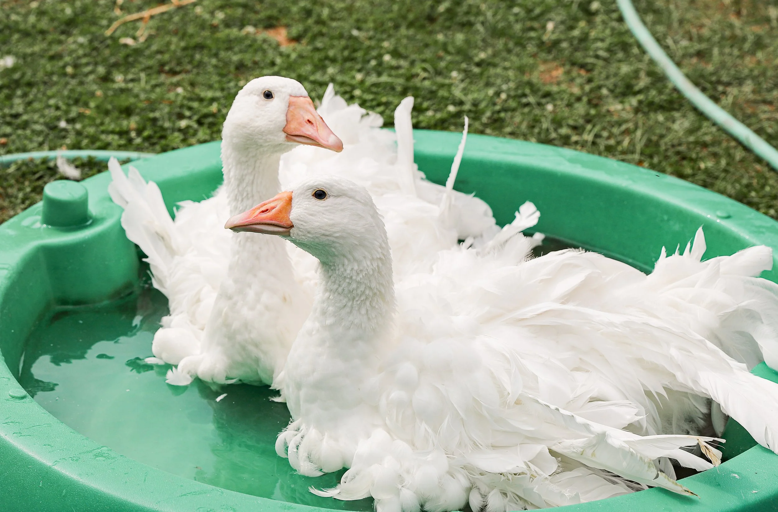 Meet Shelby and Sebastian, our two adorable Sebastopol geese! These little fluffballs started their journey under a cozy heat lamp, where they were always warm and safe. But did you know that Sebastopol geese are notorious for their soft, curly feathers? When they’re grown up they look as if they’ve come out of a wind storm!